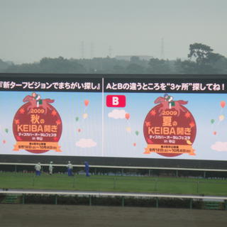府中や川崎を見慣れていると、そんなに大きくないんですよね。中山の新ターフビジョン。