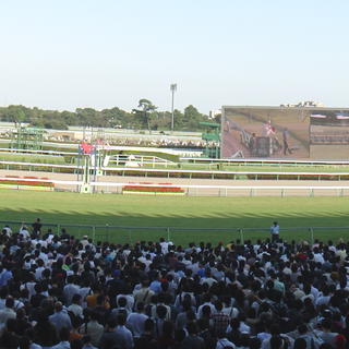 こういうのが撮ってみたかったんですよ。レース直前のパノラマ映像。今日はセントライト記念なのでこのぐらいしか入ってなくて空いているぐらいです。