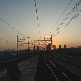 夕暮れパノラマ パノラマで縦撮影モードでカメラを横にしてちょっと広角っぽく撮影してみました。パノラマ撮影が短冊状の連写だということが途切れ途切れの電線でわかります。 あと、パノラマだと構図の調整が難しい。ついつい真ん中にメインの被写体が入ってしまいます。これも夕陽がもうちょっと左右のどちらかにあるといいんですけどね。