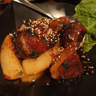 同じお店のカルビチム、カルビの蒸し煮です。大根はそれほど煮込まれずに大根の味を残し、カルビは煮崩れないけどホロホロ。そりゃうまいわけですよ。