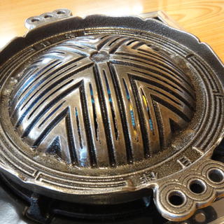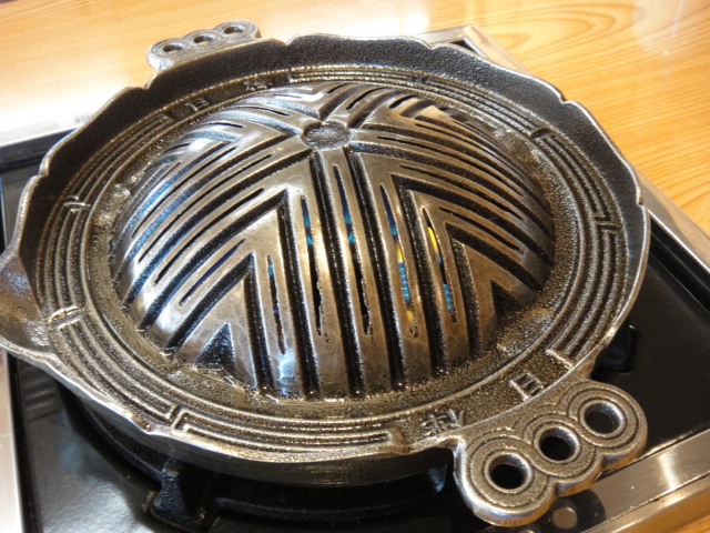 久しぶりの北海道でのジンギスカン。使い込まれた鍋ですね。