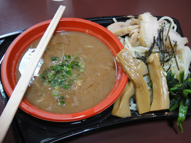 別のお店で 昨日はラーメンだったので、今日はつけ麺のお店に。 いたって普通の最近はやりのお店のつけ麺ですが、しっかり作ってあるので美味しいです。ただ、スープ割りとかできないので、残ったつけ汁がもったいなかったなぁ。