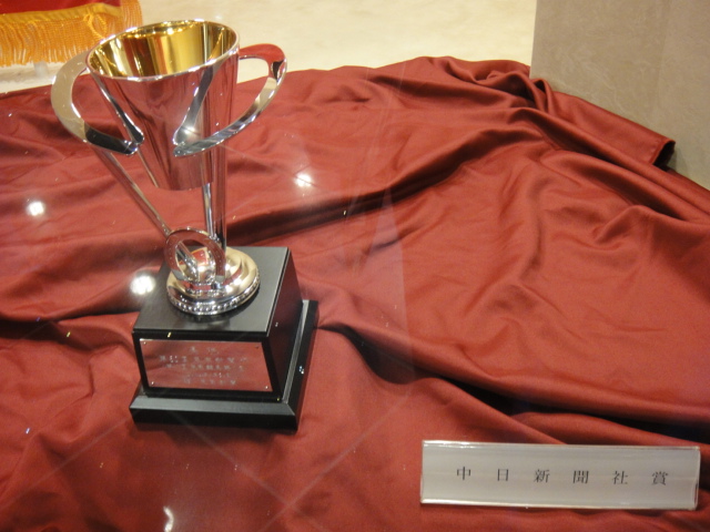 間違い? 今日のメインは東京新聞杯。ですが、なぜかトロフィーの横には「中日新聞社賞」とあります。展示の前の警備員さんに聞いても???という返事。 で、次の日にまたその警備員さんに会ったので聴いてみたところ、調べておいてくれました。ありがたいです。そもそも東京新聞の親会社は中日新聞なので、中日新聞社賞で間違いないんだそうです。なるほど、東京中日スポーツって言うんですものね。勉強になりました。