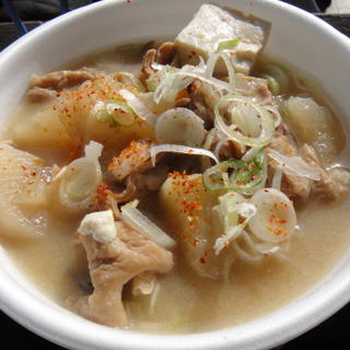 このけんちん汁みたいなモツ煮が冬場はたまらないんですよね。