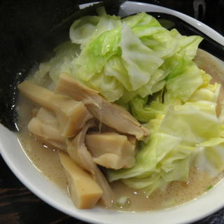 キャベツたっぷり 今日はここで。 ここだとキャベツをたっぷり食べちゃうんですよ。あと、メンマもいい食感です。最近自宅近辺のラーメン屋さんのメンマがみんなこの太い歯ごたえのあるメンマになってます。同じところから仕入れているんでしょうかね。