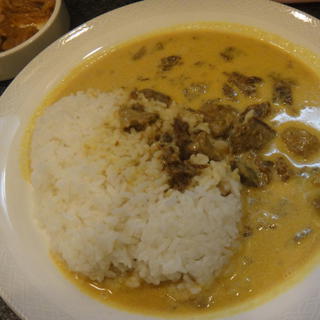 初めてのお店 今日はお店に行くのが遅くてフラれてしまったので、ちょっと行ってみたかったあるお店に。ここはクリーム系がウリのようで、普通のカレーと、クリームカレーがあります。そこでこれは牛すじのクリームカレー。 不思議なカレーですね。ちょっと他も食べてみたいけど、次はいつくるかなぁ。