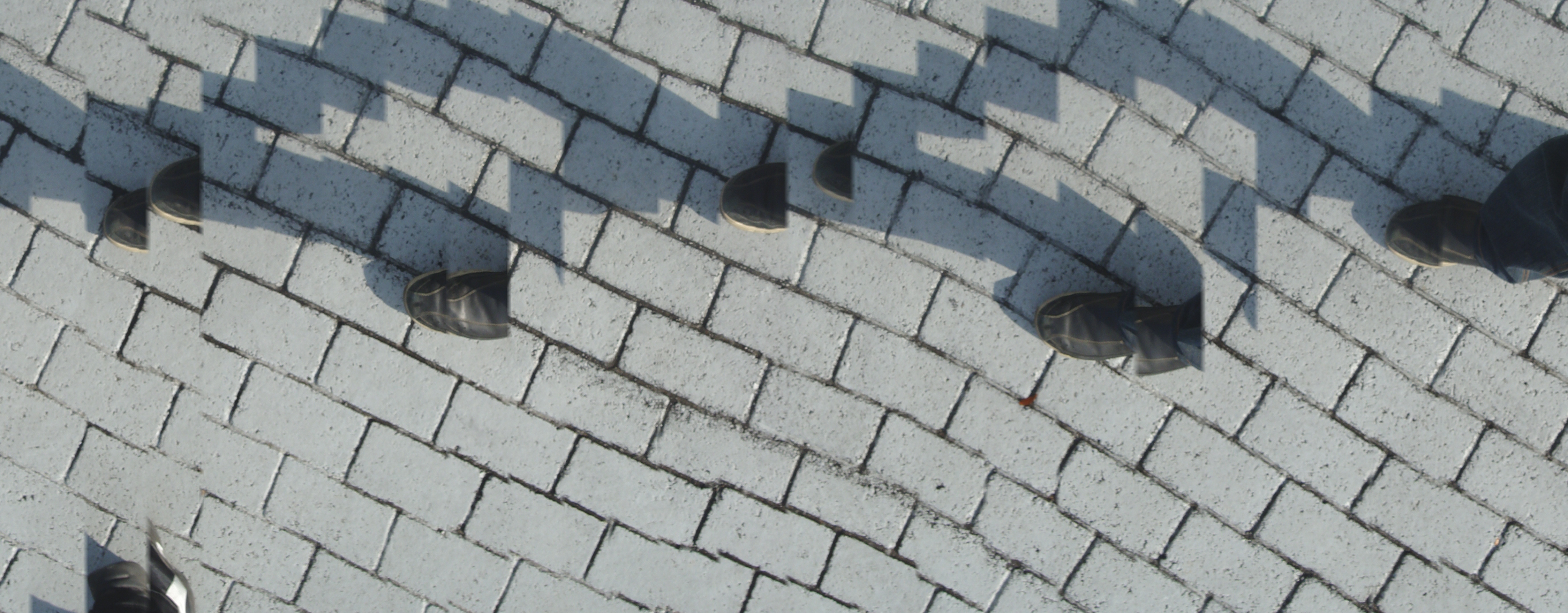 パノラマ写真コンテストの表彰例を見ていて知った撮影方法。歩きながら水平に自分の足を撮影するとこのように映ります。短冊形にたくさん撮影しているのがよくわかりますが、なんか不思議な画像ですよね。