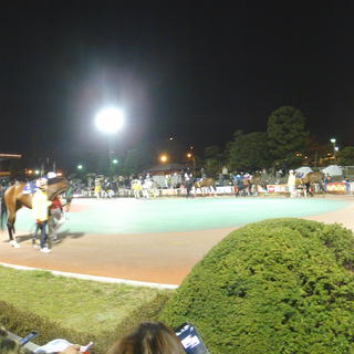 静かなパドック 今年初のナイター重賞観戦。というわけで南関デスクさんと怪しい笑顔さんにお会いしました。みんな好きですねぇ。 それにしても今日のパドックはなぜか静か。馬の蹄の音がやけに響くパドックです。みんな本気で検討してるんですねぇ、というより寒くて声が出ないのかも。