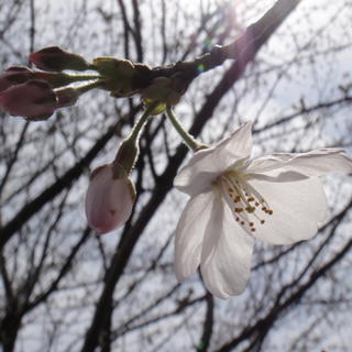 畑の横の桜の最初の一花。寒いので今年は咲くのに時間がかかりそうですね。