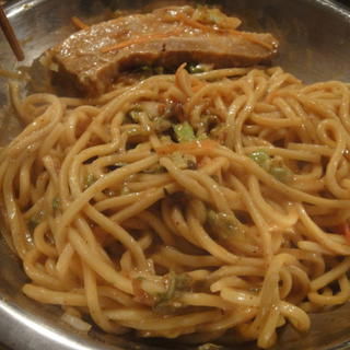 ピザソバ、混ぜて食べる直前の状態はこんな感じ。これだけど味はピザなんですよね。
