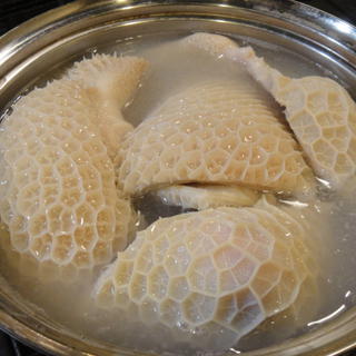 週末の花見に向けての仕込みの最初はトリッパ、いわゆるハチノスです。まずは臭み取りから。