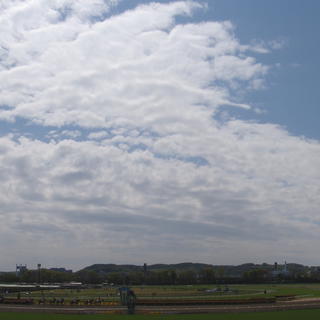 いかにも春の空。まさに競馬日和。のんびり空いている競馬場でレースを楽しみたいですね。