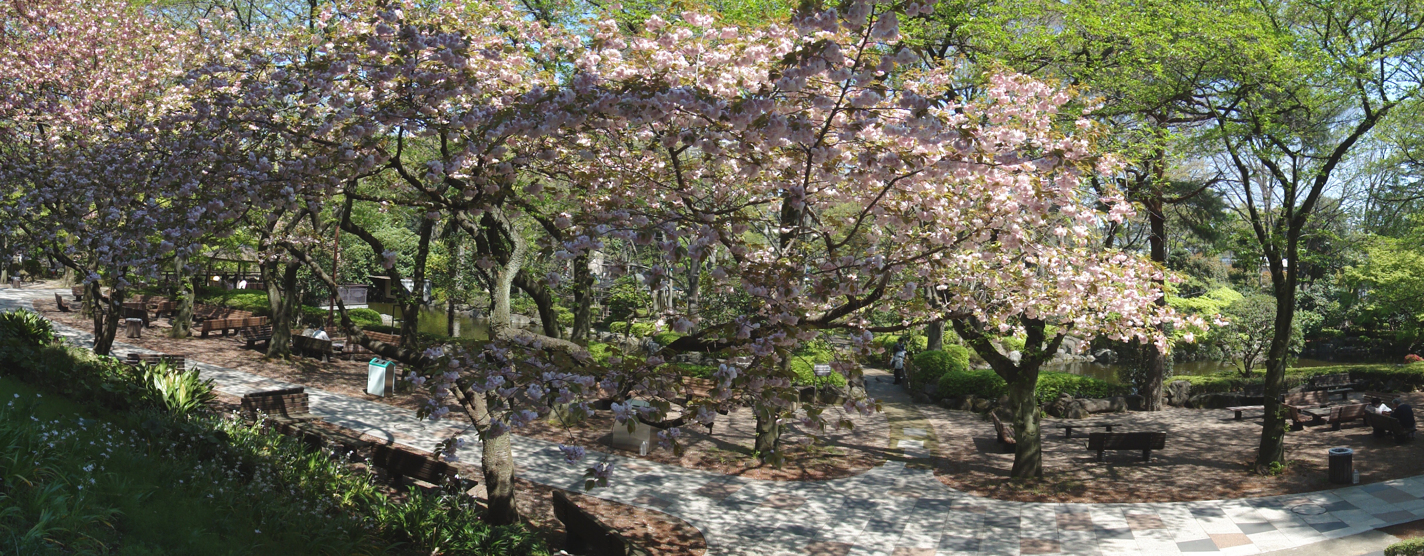 今日もいい天気、お花見日和です。パドック裏の八重桜。