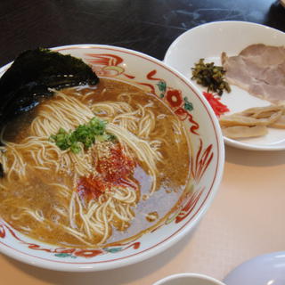 行動パターンが... 今日のお昼は麺にしよう、ということで博多ラーメン。 お店からラーメンを持ってきて、とりあえずそのラーメンを撮影しちゃうのはブロガーの性ってやつですね。お互い会話する前にまず撮影してました。