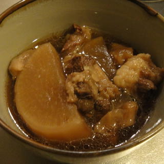 圧力鍋料理の第2弾は、大根と牛すじの煮物。かつおだしを使ってさっぱりと煮込みます。でも牛すじと大根から甘みが出て、けっこういい味になるんですよね。
