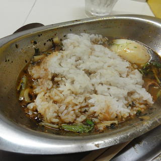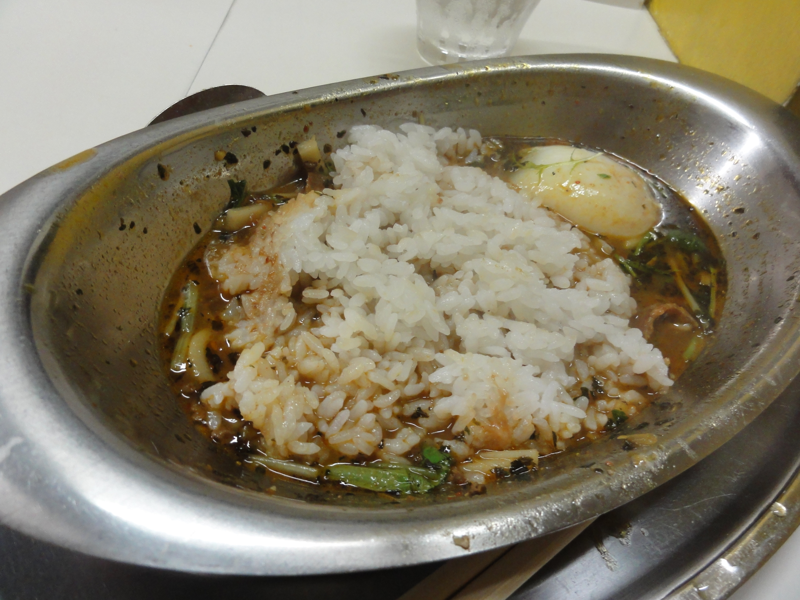そしてうどんを食べ終わったら、ライスを入れてリゾットのようにして食べます。というより初めてこのお店で北海道のスープカレーみたいなカレーの食べ方をした気がします。