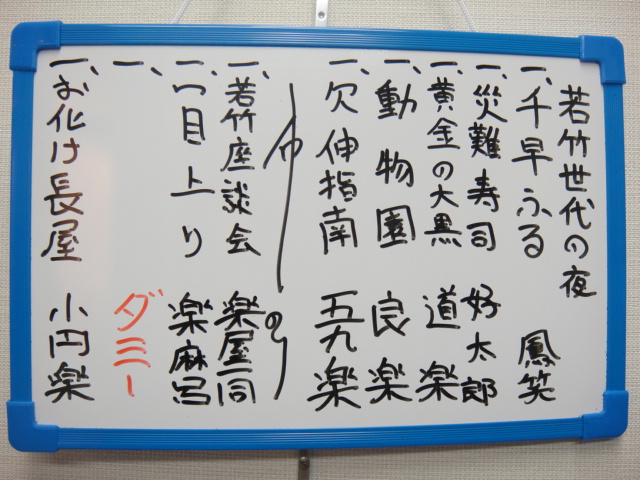 なつかし話 ちょっと遅れて参戦。師匠はこの時期によく演る、たいくつで、たいくつで、ならねえ~や、っていうお話。 若竹座談会に師匠が出なかったのは残念ですが、昔懐かしいお話をたっぷり。とはいっても行ったことは無いんですけどね。