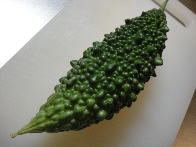 今年の初ゴーヤです。収穫のタイミングもばっちり、これ以上待つと黄色くなっちゃいます。