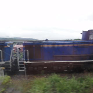 目の前で追い抜いたのがこの北斗星!北海道ではDD51形の重連運転(2台の機関車で引っ張る)で、この北斗星色の車両が目立つんですよね。