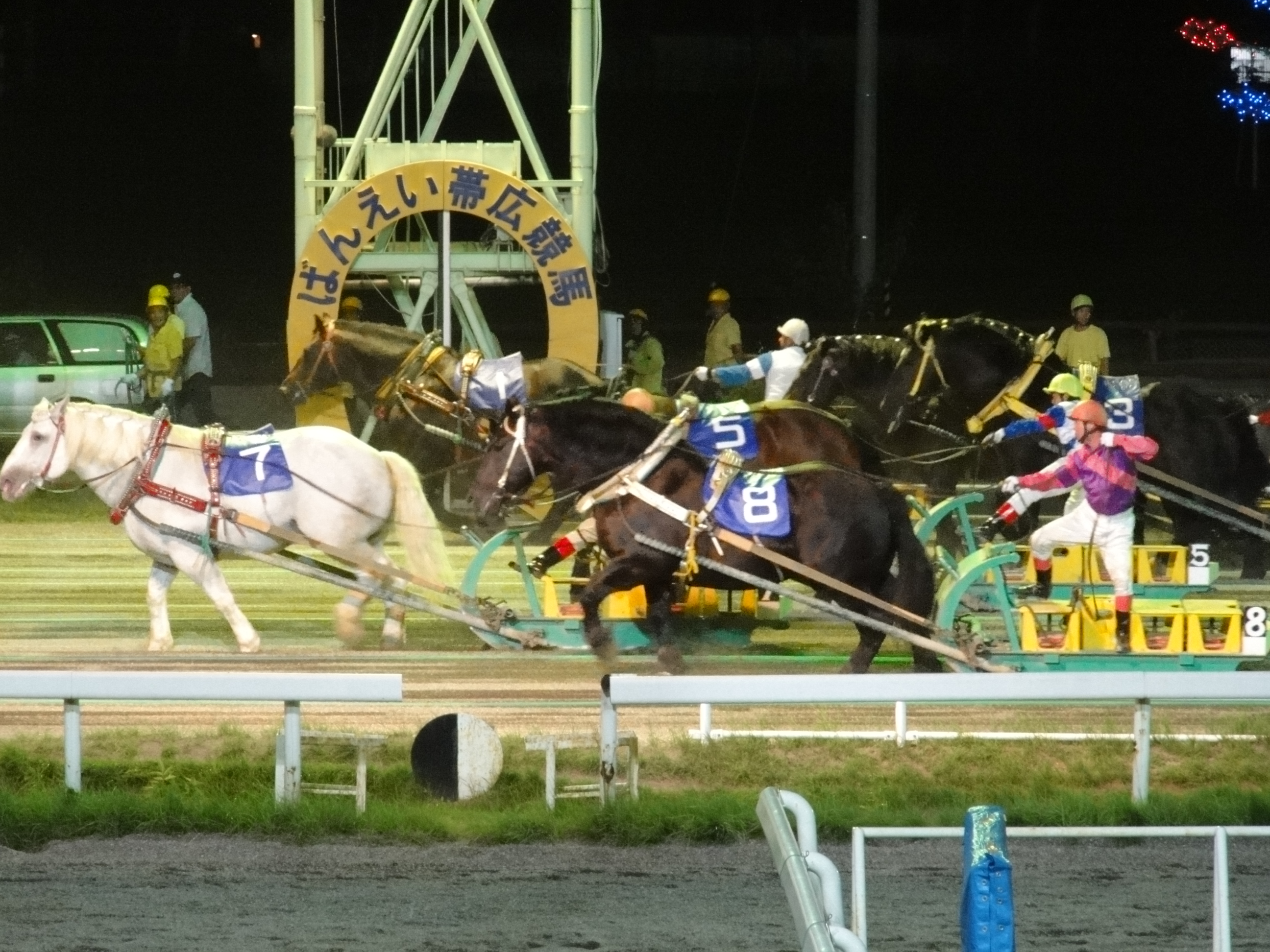 やっぱりばんえいでもナイターで撮影するのは難しいですねぇ。パドックはばっちりですが、レースを撮るのは難しいです。