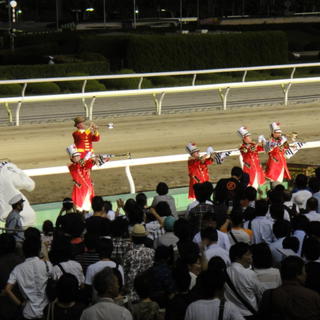 今年からG1で出てくるおばさんがいませんが、今週はサンタアニタウィーク。センター後ろではあちこちで楽しい演奏をしてくれるこの方が吹いています。