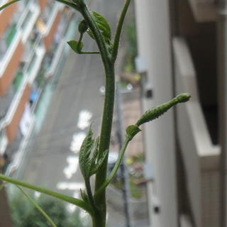 これは結構大きい雌花の蕾です。これは大きな実になりそうですね。受粉を忘れないようにしなきゃ。