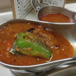 なにかが無い? 今日は夏の夜かれーの、バジル無しバージョン。これって野菜の味がダイレクトにすーぷに出ているのがよくわかるかれーです。 これからしばらくはコースで出てくるそうなので、注文は不要だそうです。楽しみ楽しみ!