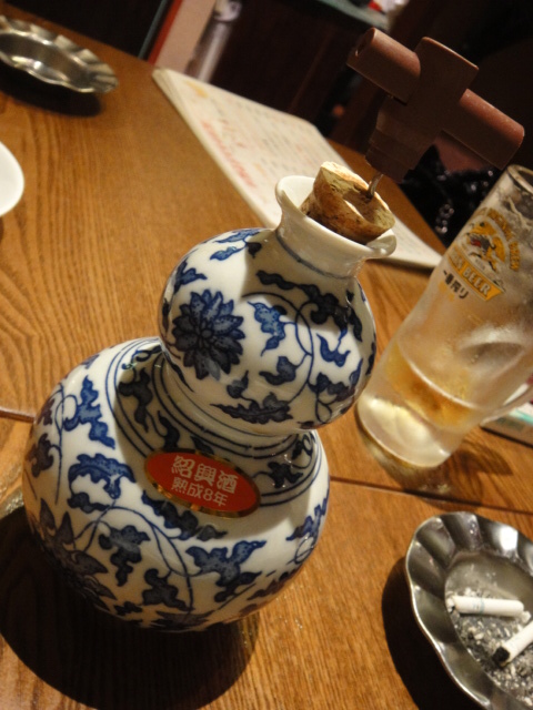 今日は飲み会で自宅近くの中華料理屋さん。ゲストのお祝いの紹興酒。8年ものだそうで、器もいいですが、味もなかなかおいしかったです。