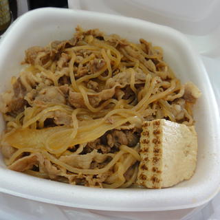 牛鍋丼はこんな感じ、ごはん+肉豆腐のほうが勝ちかな。