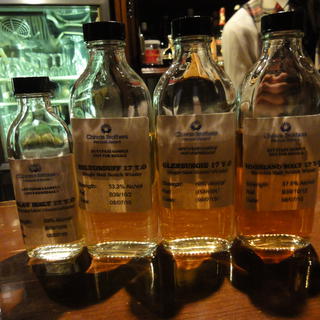 大人の遊び これも週末のバーのお話。 バランタインの17年ってどういうブレンドでできているの?ということで、そのブレンドの元となるシングルモルトを色々飲ませてもらいました。 配合比率はもちろん秘密ですが、4本づつそれぞれがあの香りの基礎となってる感じはなんとなくわかります。そして同じグラスで順番に飲んでみると....グラスでブレンドされて最後にあのバランタインの香りがなんとなくする気がするんです。 こういう遊びをさせてもらえるのって、酒飲みにとっては一番の贅沢ですよね。