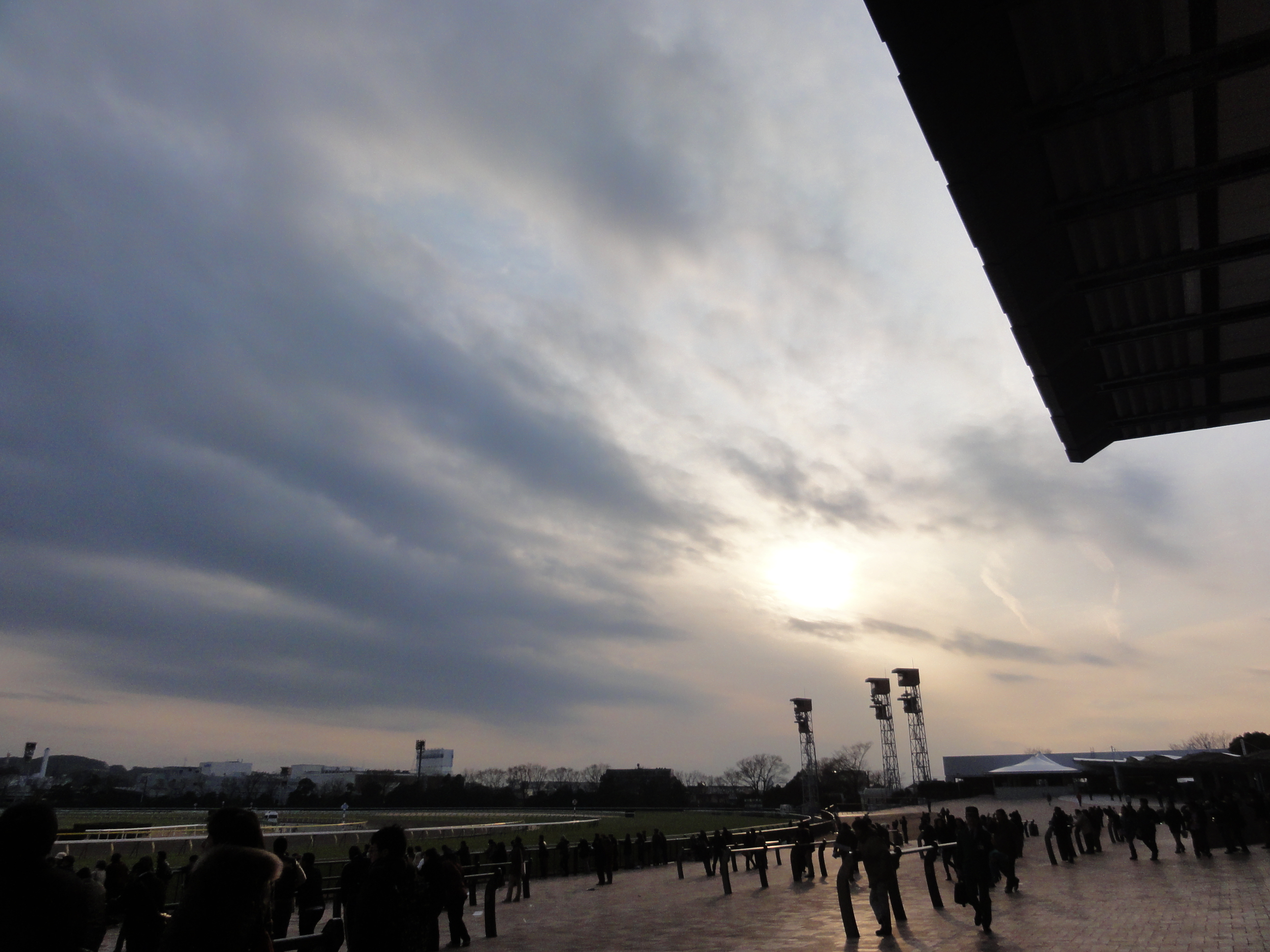 冬の弱い日が沈みます。今日は風が強くてとても寒かったけど、明日は G1デー、もう少し暖かくなるといいですね。