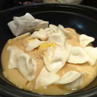 餃子鍋 打ち上げで行った宮崎の料理のお店、地鶏のコラーゲンのスープの餃子鍋です。餃子の皮はタピオカが入っているので煮崩れません。 このお店、結構いろいろメニューがあって美味しかったです。やっぱり地鶏炭火焼とかあるとついつい食べたくなるのは九州にいたことがあるからな。