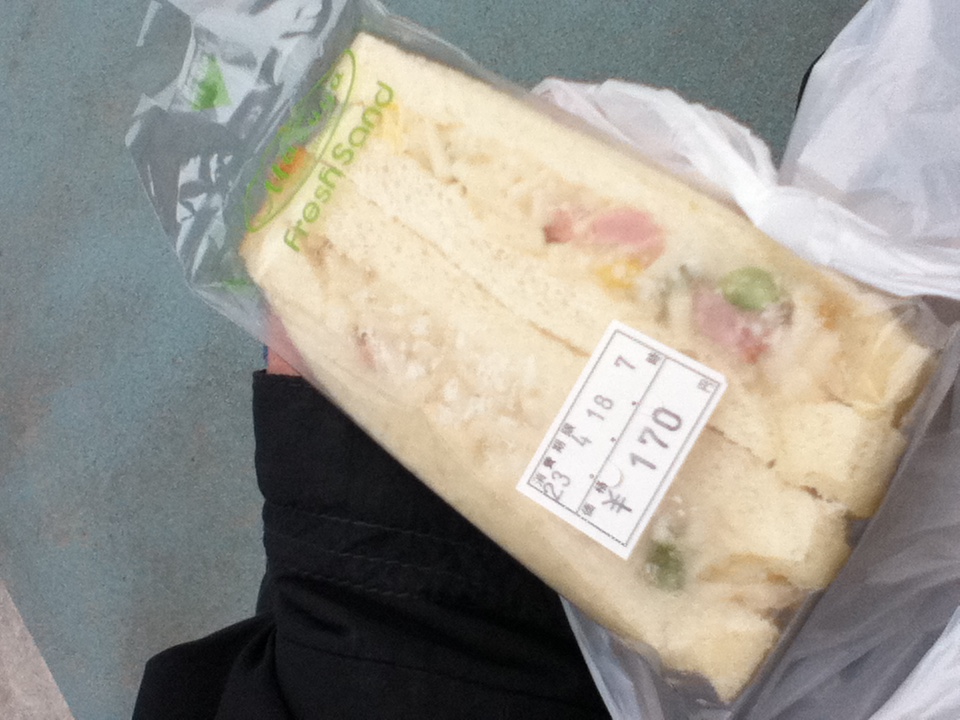 開門前の競馬場。朝ごはんは白スパサンド。さて、これ食べたら開門だな。