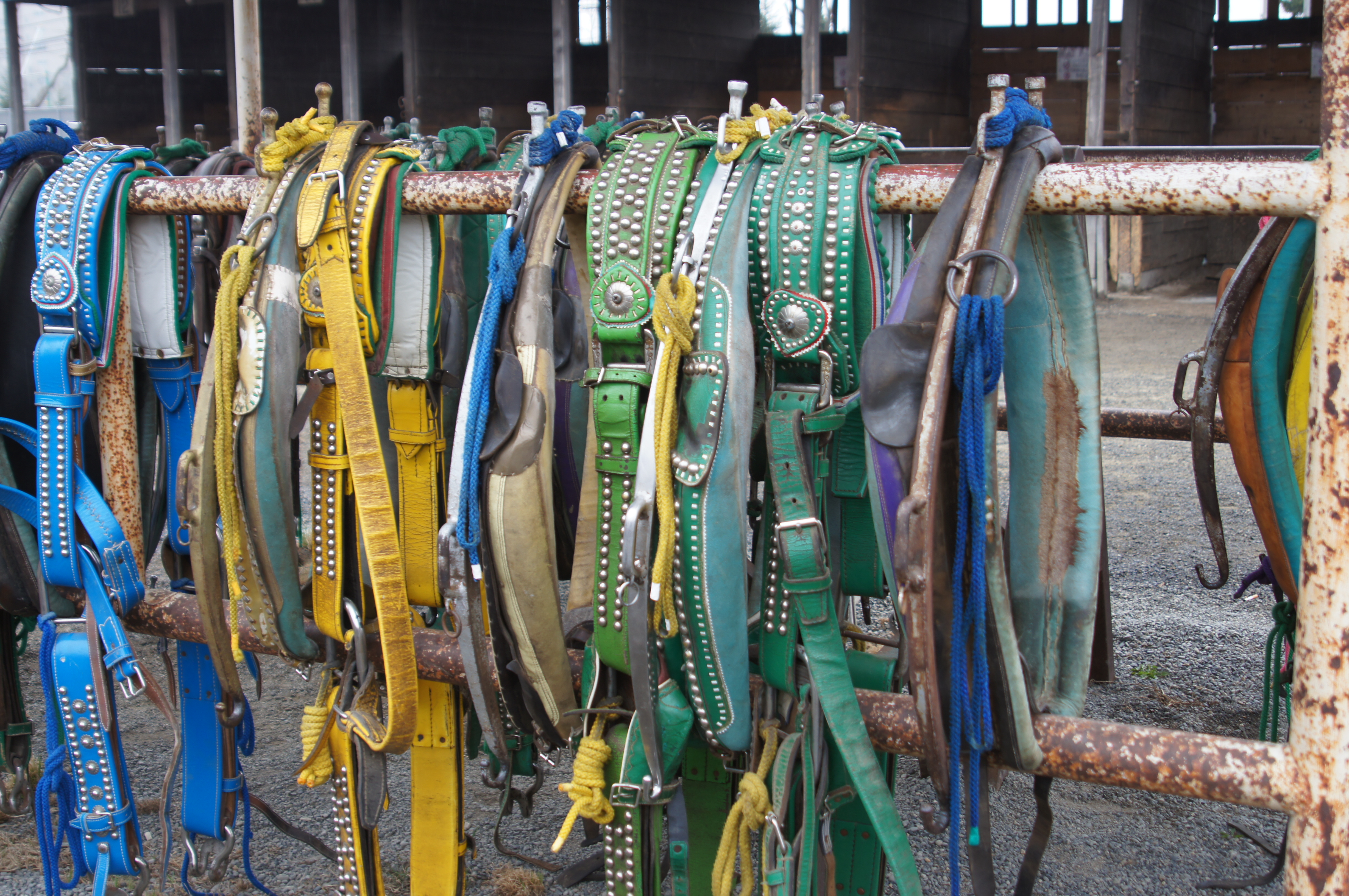 ばんばは鞍をつけません。ソリをつなぐこれがばんばのトレードマーク。当然おしゃれしますよね。