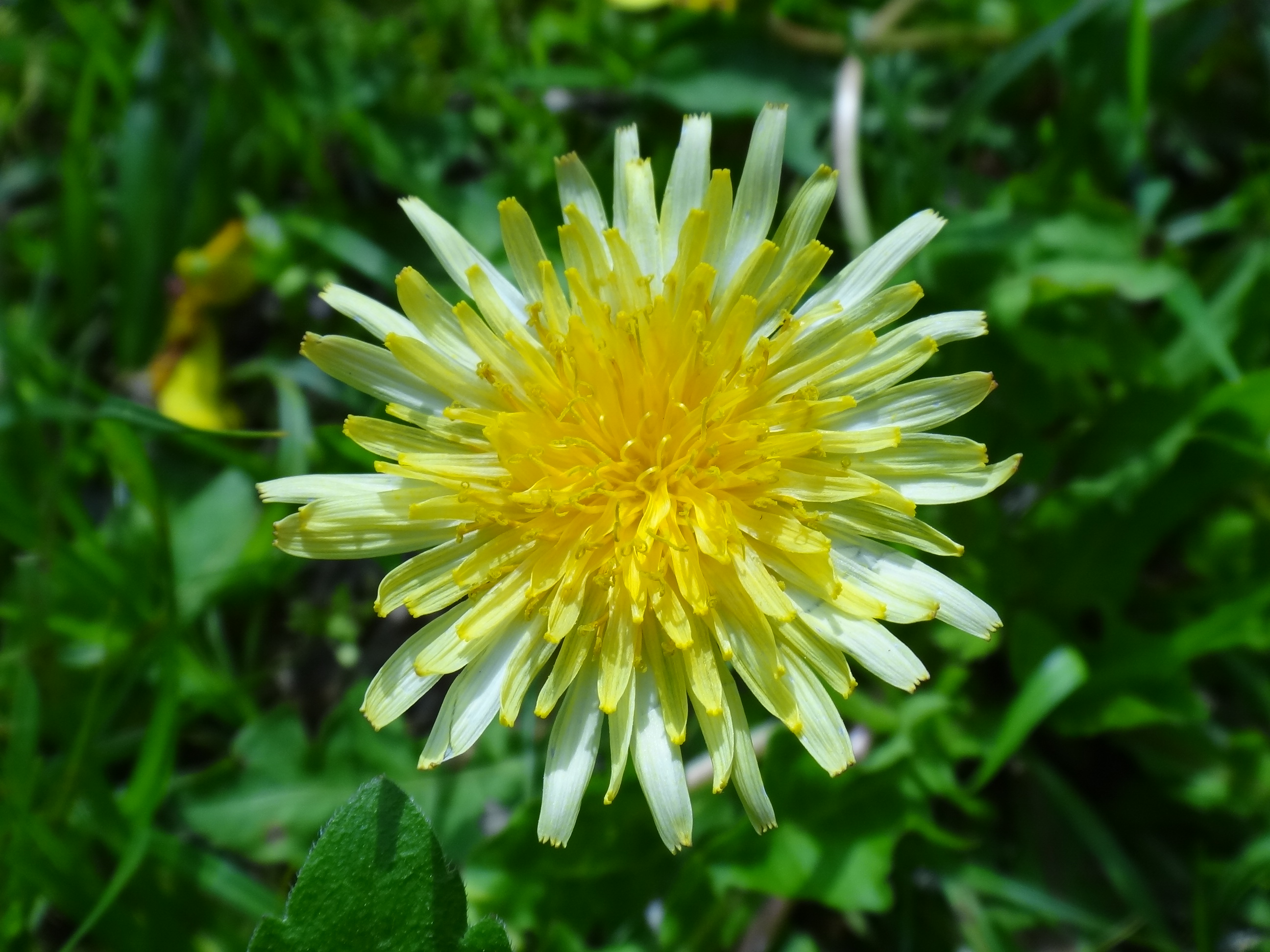 こんな色の花があるのがカントウタンポポの特徴でもあります。黄色の色の濃い元気なタンポポもいいですが、こういう淡いのがあるのがいいですよね。