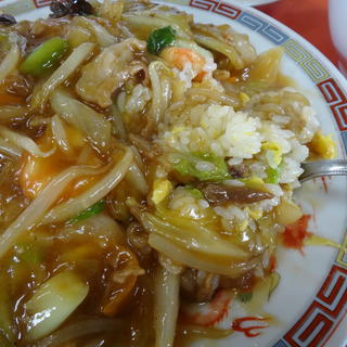 いわゆるあんかけチャーハンです。お店では「掛け焼飯」だったっけ。あんかけご飯じゃなくて、あんかけ+チャーハンなところがミソ。こりゃうまいっす。