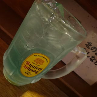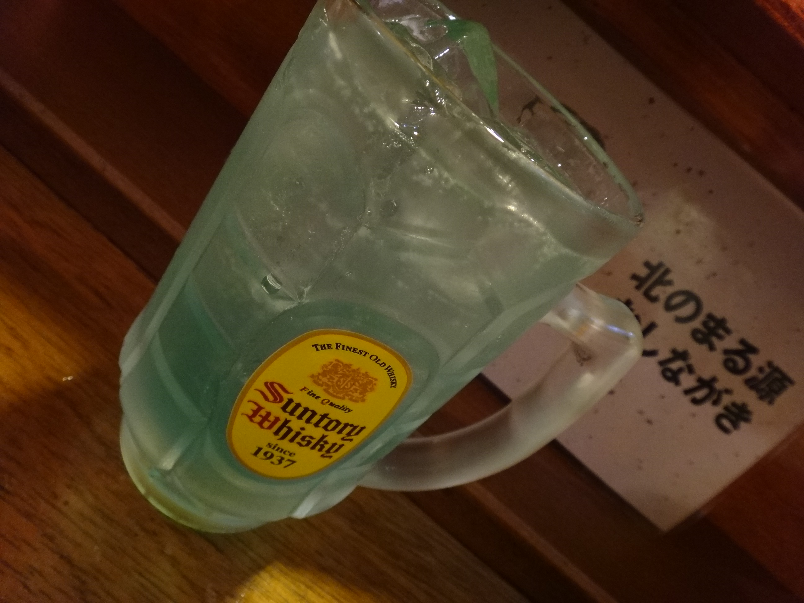 屋台の締めは、青いハイボールで。十勝ハイボールとか書いてあったけど、ラズール(グレープフルーツリキュール)で青くしてるんですね。