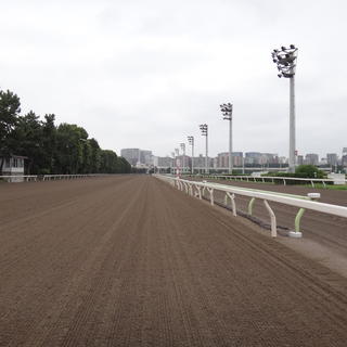 向こう正面 今日は打って変わって大井。馬場入場ができまーす、大井は太っ腹で向こう正面まで。 でもダートコース歩くのって砂が深くてとっても辛い。これでマラソンやったら、あの玉砂利マラソンを超えるハードなレースになるかも。