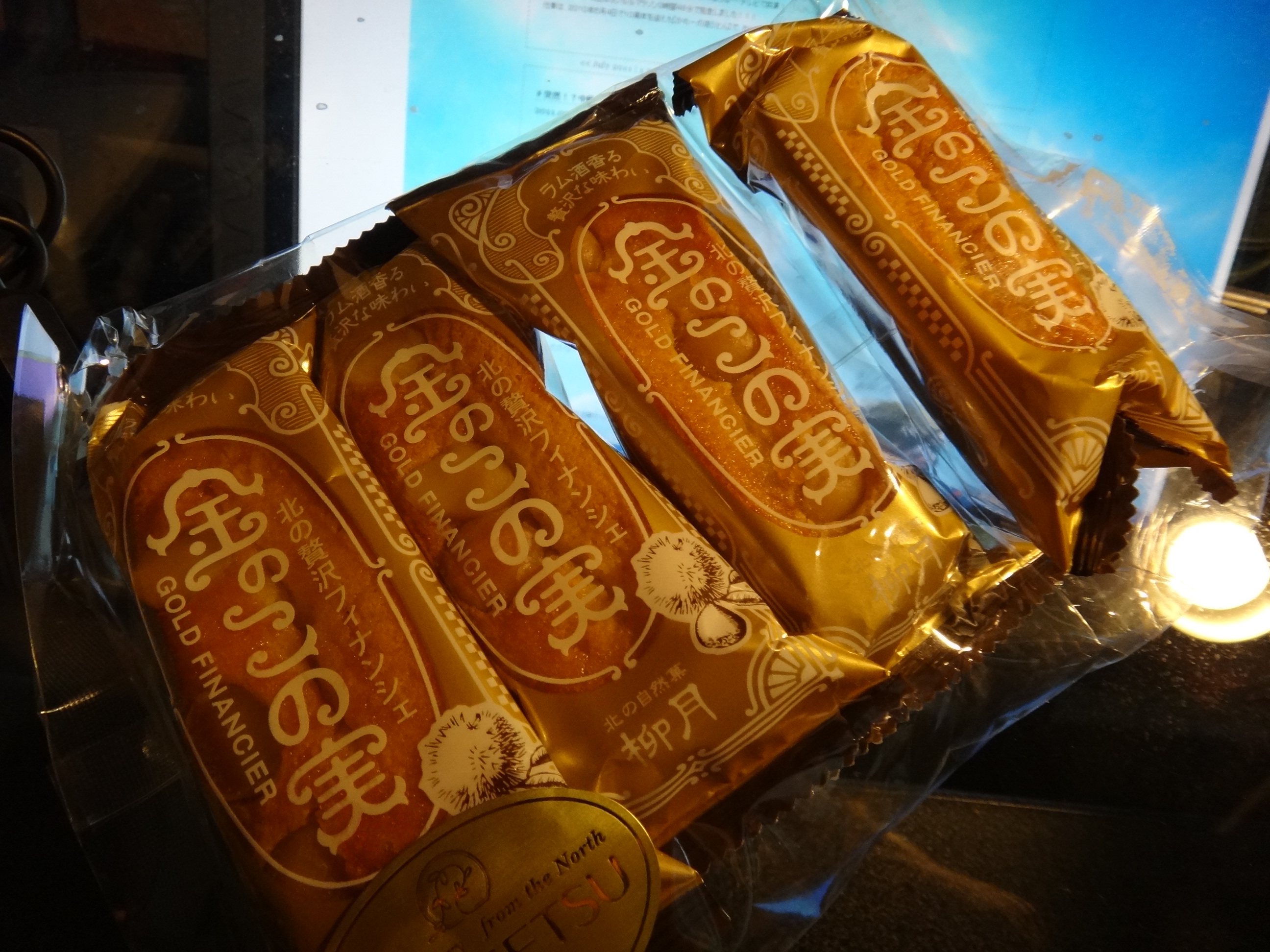 グレードアップ 帯広銘菓「十勝子の実」結構好物なんですよ。これのグレードアップ版がこの「金のこの実」 シンプルになったけど、こっちの方が贅沢な味です。洋酒が効いているからかな。この生地にあの木の実をのっけたら最高なんだけどな~。