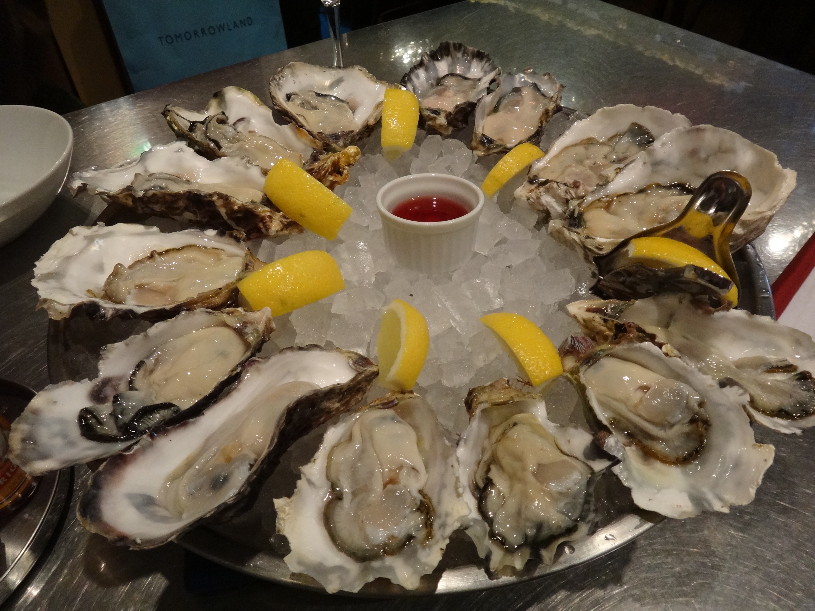 オイスターバー! 撮り溜めシリーズ、オイスターバー。 久しぶりに行ったオイスターバー。毎回このお皿を見ると笑顔になっちゃいます。さっぱり味から順番に食べていって、だんだん濃厚な牡蠣を食べる、これがたまらんのですよ。