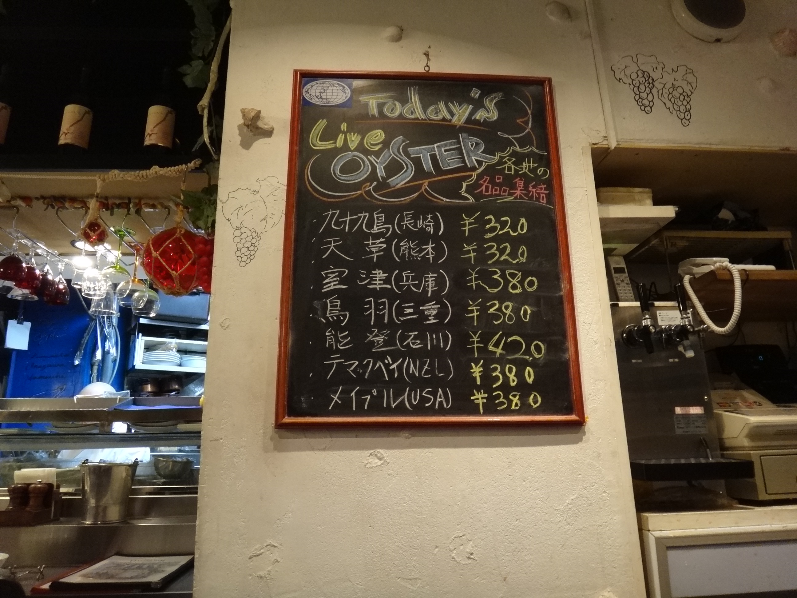 前日の生牡蠣、右にあるレモン絞りから、下にぐるっと2つづつ一回り、このメニューの上から順番の牡蠣になります。
