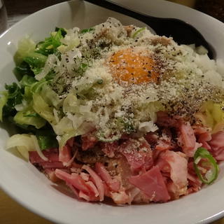 かるぼなーら。 いつものお店のかるぼなーら。 いい背脂を使うと生クリームみたいになるので、それを活かしてクリームを一切つかわずにカルボナーラっぽい麺をつくっちゃう。 他じゃ絶対ありえないメニューだよな、こりゃ。 でもこれがうまいんですよ、たまらんですわ。