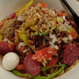 ピザソバ ピザソバ、久しぶりです。 食べると別にピザの味がするか?といわれるとピザっぽくはない気もするけど。だけど具はピザそのもの。これが麺っていうだけでこれだけ変わっちゃうんだよなぁ。 名前はともあれ絶対的に美味いってことにかわりはないんですけどね。