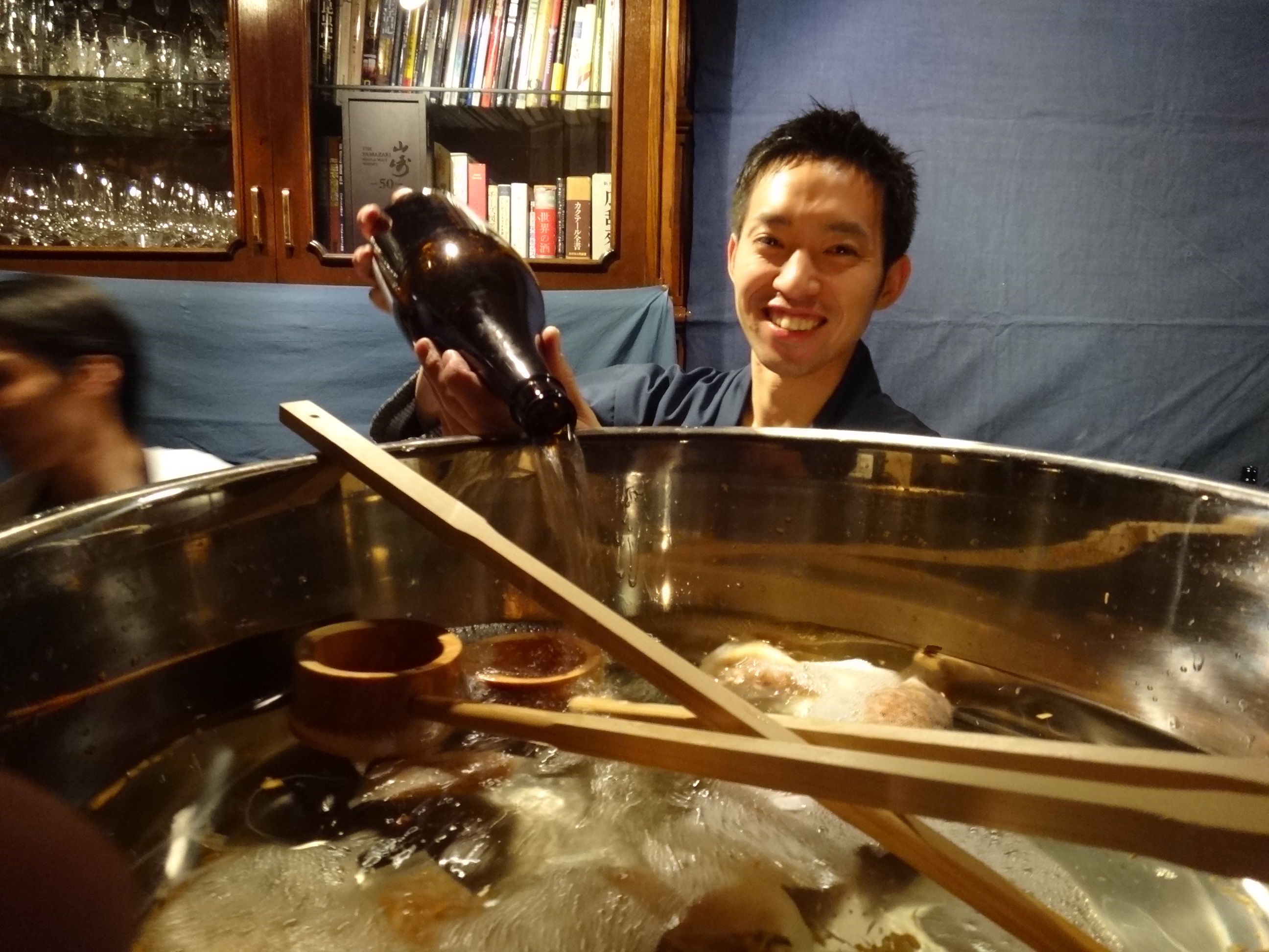 日本酒の怪 今日は年に一度のバーの日本酒の会。今年は宮城の伯楽星というお酒でした。こうやって樽に注いで樽香をつけながらいただく日本酒ってのもたまらんですな。今日はバーテンダーさんもすっかり酒屋の店員となりこの笑顔で日本酒を注いでます。 とはいいつつ。 日本酒は怖いです。ちなみにこんな写真をとった記憶も全く無く、なんか上機嫌で全く知らない人と仲良く話していたなぁ、みたいな記憶だけがあるんですが....。まあ飲んだ量が飲んだ量だけに、こんな日もあります。 コメント(2) yuki 2012.3.26 あ、いい写真ですね。 本当なら樽に直接なんですが、 蔵元の拘りでステンレス経由だそうで 味が変わるのを嫌うらしいです。 冷蔵庫がない店には降ろさないんだとか・・・ ・・・でも、あれだけ飲んじゃうと 伯楽星の味わいも遠い記憶の彼方・・・ てつじん 2012.3.26 確かにこうやれば樽香は 一定につきそうですけどね。 確かに、自分も伯楽星の味は覚えてないです... というか別の銘柄も最後は出てたような。 ではでは。