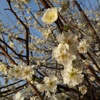満開の梅 今日は二日酔いでフラフラになりながらの春の畑仕事。 こんな時に気晴らしになるのが、畑にある梅の花です。こんなに満開。 梅というのは剪定した上でポツリポツリと咲くのがカッコイイのですが、畑の梅なんですからほっといたままの生やし放題。そんなわけでこんなにパーッっと派手に咲きまくるんです。 でも、こういう梅だと甘い香りがたっぷりするし、これはこれで気持ちよく咲いているようで好きなんですけどね。
