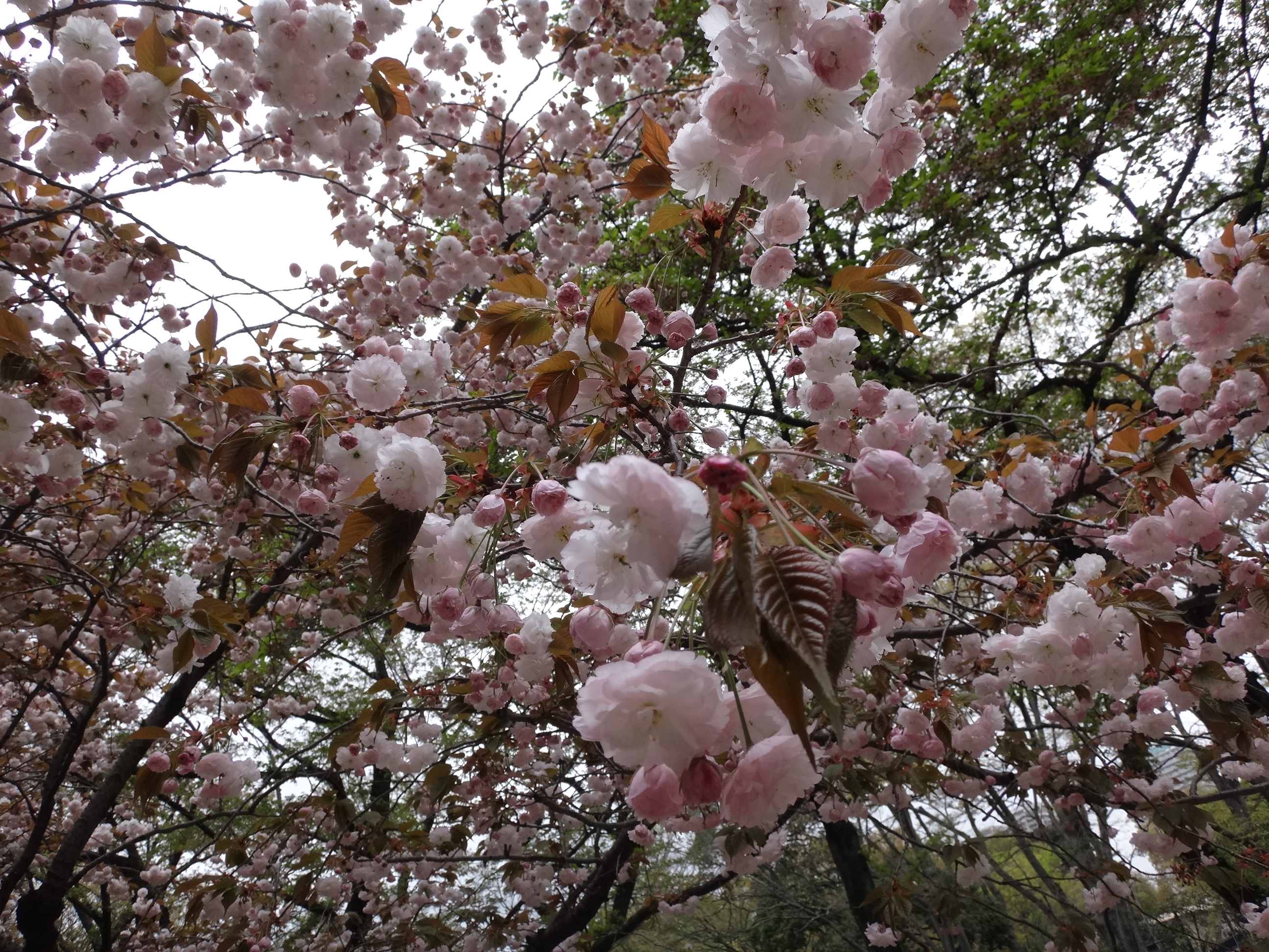 昨日の続き、八重桜です。八重桜のほうが期間が長く、花吹雪もすごいので、こっちの方が楽しめるんですよね。