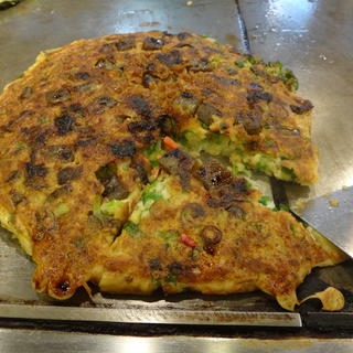 すじネギ焼き 大阪遠征といえば、恒例のネギ焼き。今年も牛すじのネギ焼きで。 ビールをジョッキで飲みながら、目の前の鉄板で手際よく作られてくのを見ているのが、一番のおいしさのスパイスだったりして。相変わらずうまいです。