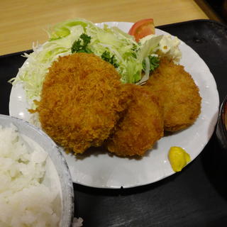 ついつい頼んでしまう、ミックスフライ定食。メンチとクリームとコロッケ。これが一つがアジフライだったら完璧なんだけどな。