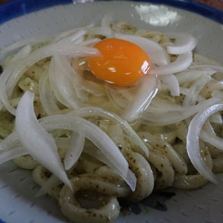 いつものバジルうどんをいただきます。これが合うんですよね。