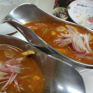 いよいよ秋のプレミアム 秋の夜かれー、今月からはプレミアム。 秋のプレミアムはミョウガ+梅干し。カレー屋とは思えない具ですが、ここではぴったり。これを発見した人は偉いですよねぇ、それにしても、なんでこんなに合うんだろ。